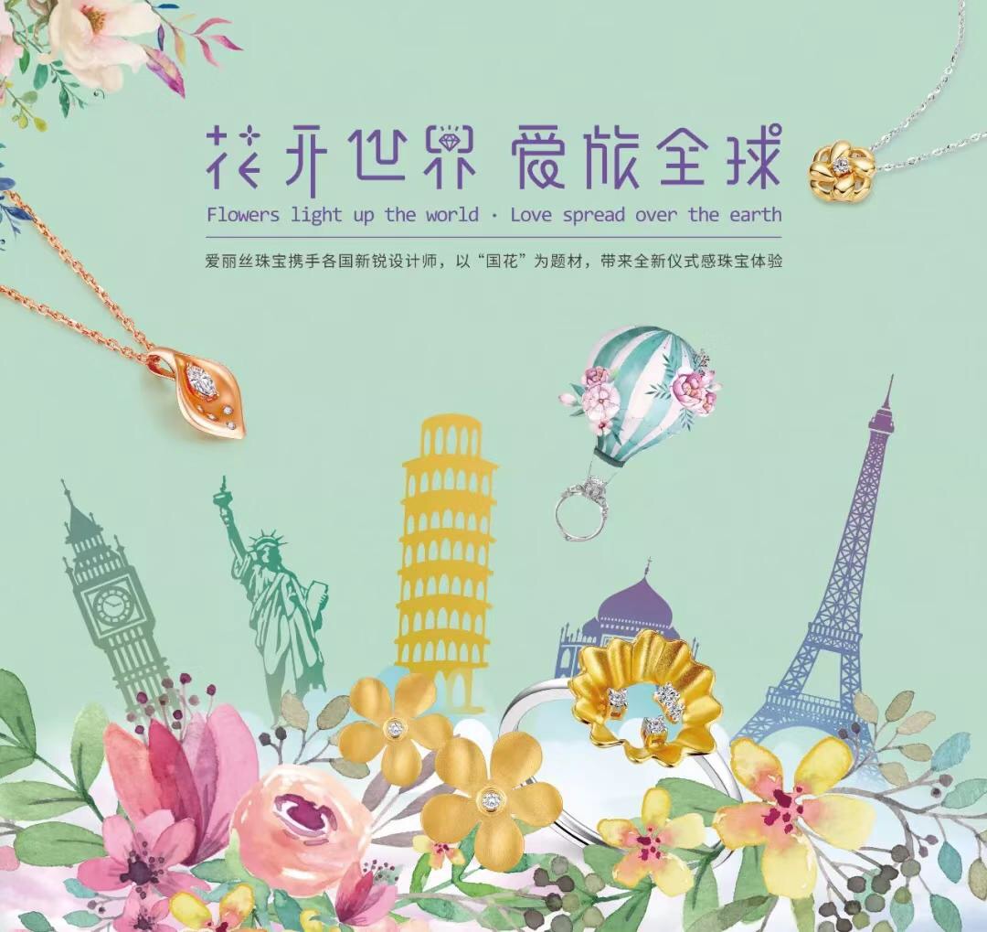 2018年,ALICE爱丽丝珠宝提出“花开世界 爱旅全球”主题概念