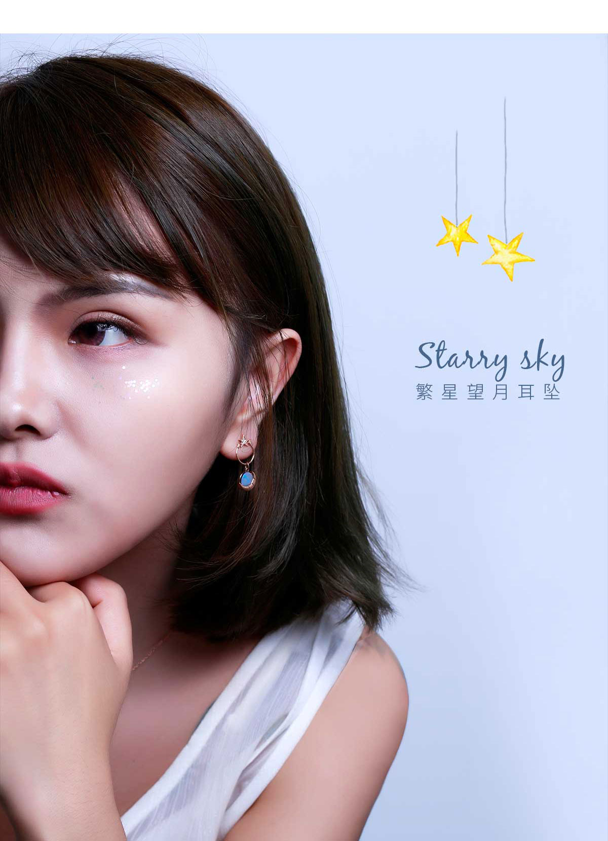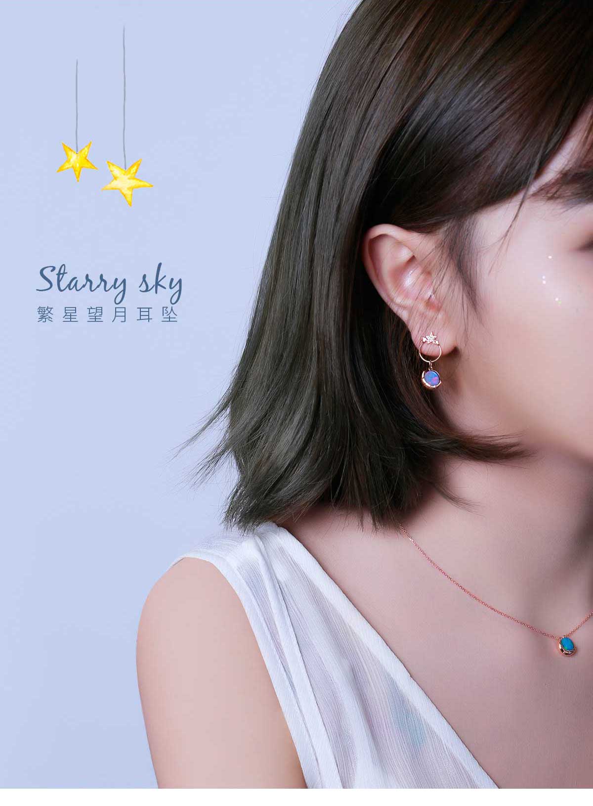 【星空系列】18K金钻石欧泊耳钉